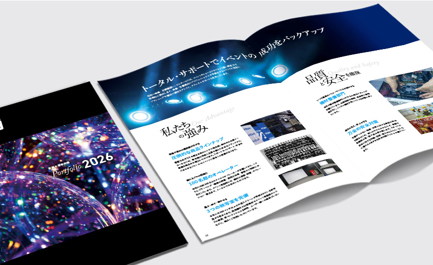 映像・音響のリーディングカンパニーのイメージを一目で伝える表紙デザイン
