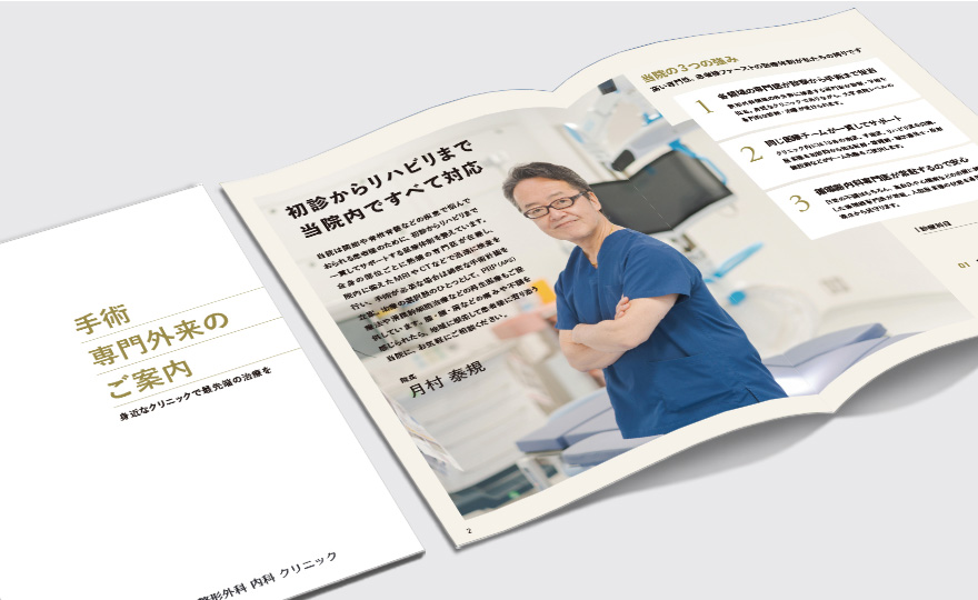 数字と顔が見える安心感。手術への不安を信頼に変える、専門医療の案内パンフレット