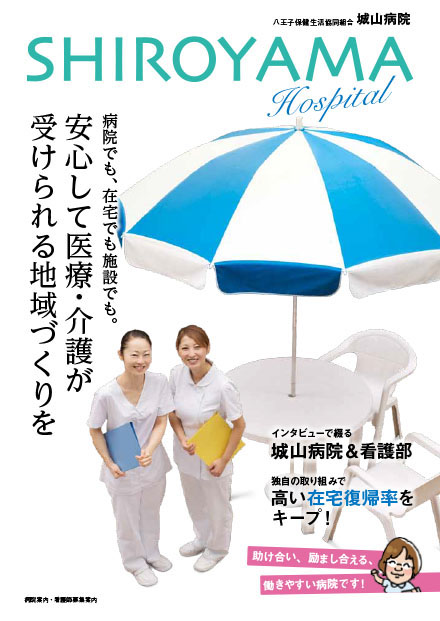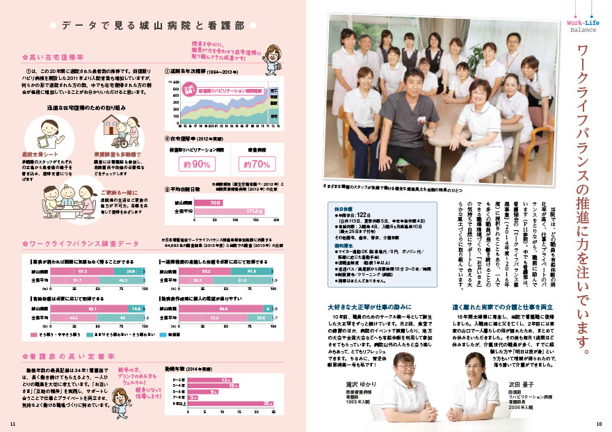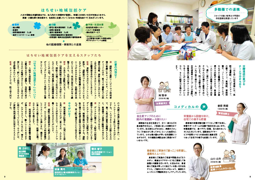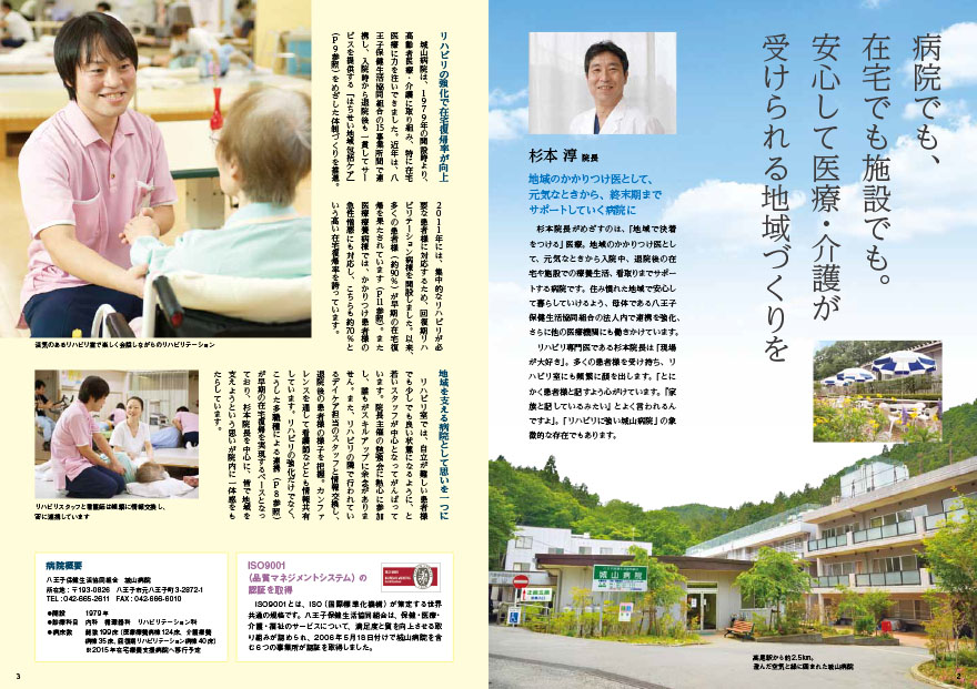 杉本院長が目指すのは「地域で決着をつける医療」。地元に根付いた病院ならではの、待合室で読んでもらえる雑誌風の病院案内。看護師募集パンフレットも兼ねた新しい形でのご提案になりました。