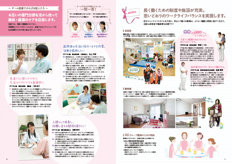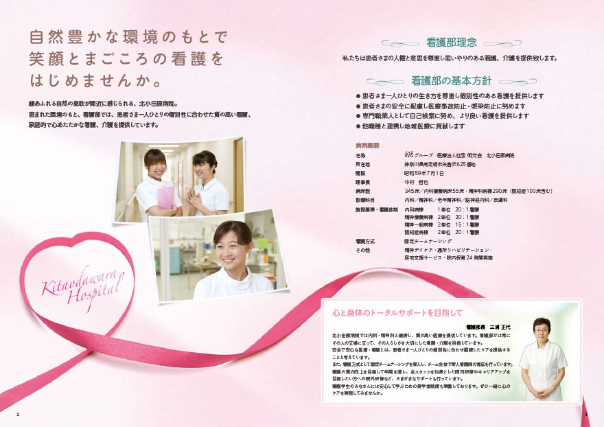 精神科につきまとう暗いイメージを払拭したいというナースのみなさんの強い思いがあり、取材、撮影を通して、それにお応えする形でデザインさせて頂きました。