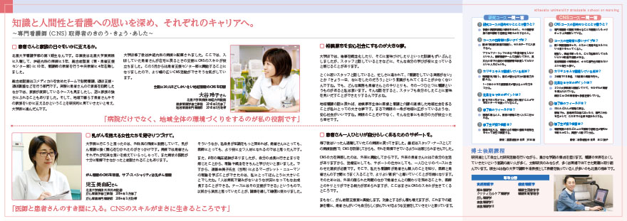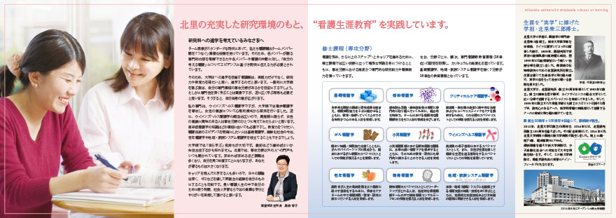 看護や介護の現場でキャリアを積んだ人も幅広く受け入れ「生涯看護教育」を目指す人に向けた読んでもらえるパンフレットを制作させて頂きました。