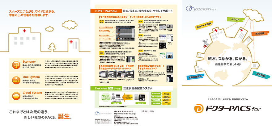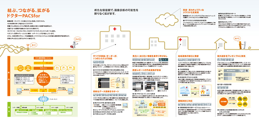 遠隔画像診断システムを分かりやすく白を生かしたデザインで表現してほしいというクライアントのご希望に沿ってデザインしました。