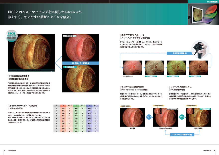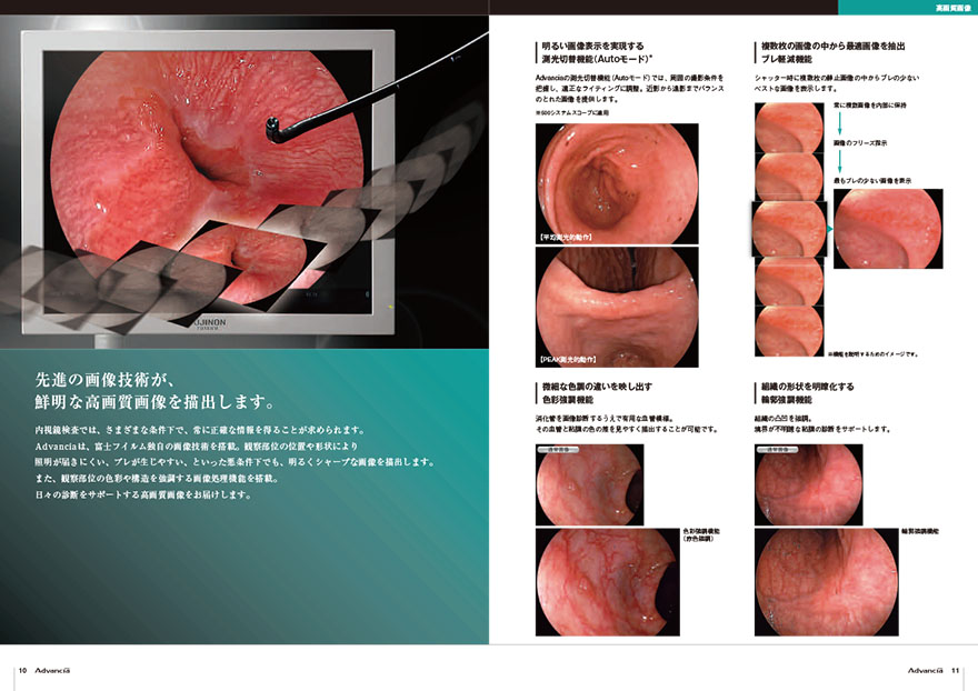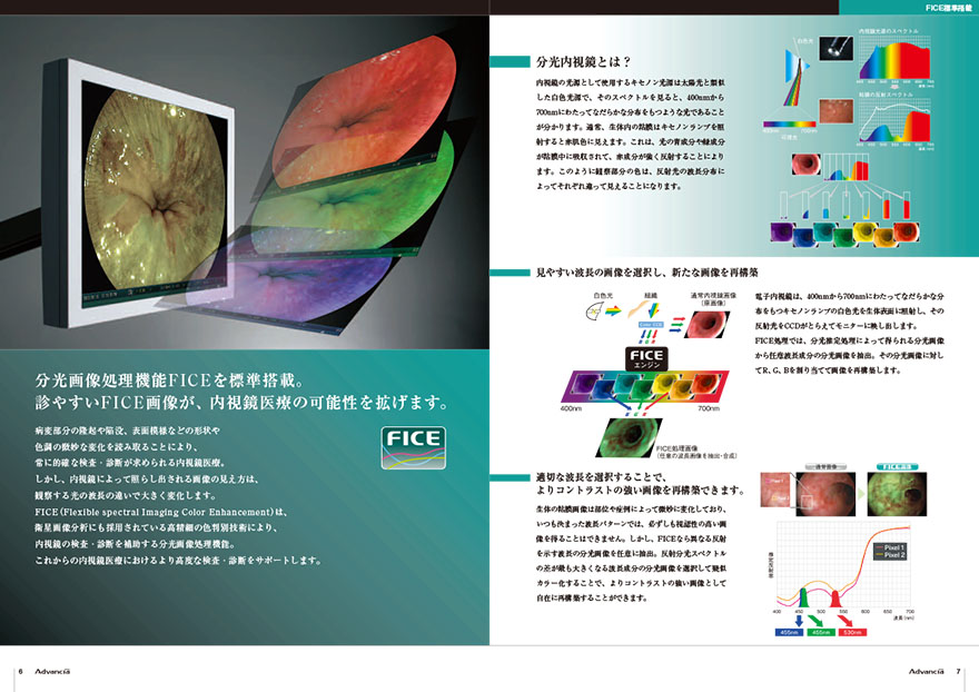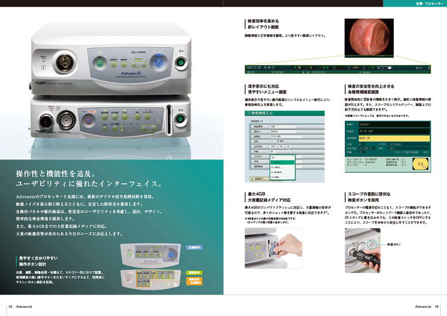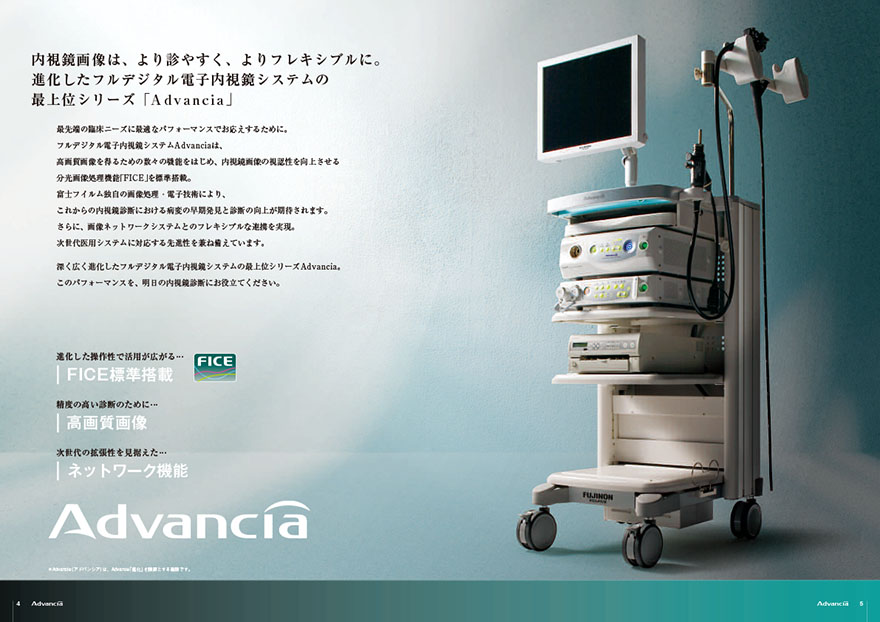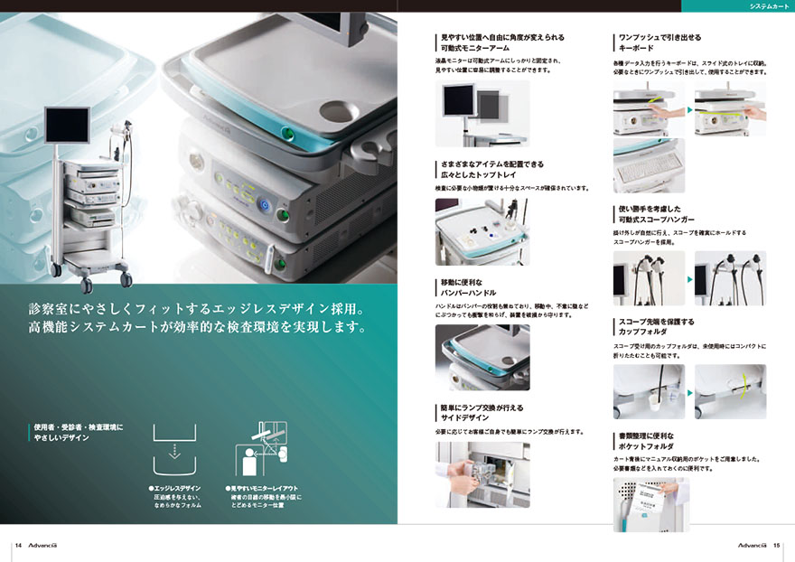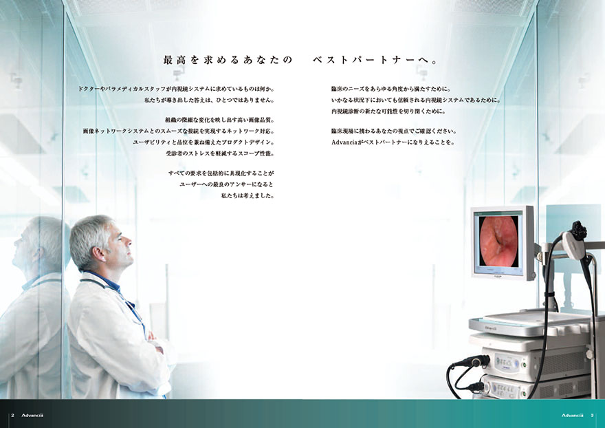 最上位機種の内視鏡装置でありましたので、かなりのコンセプチュアルを要求されたパンフレットでした。