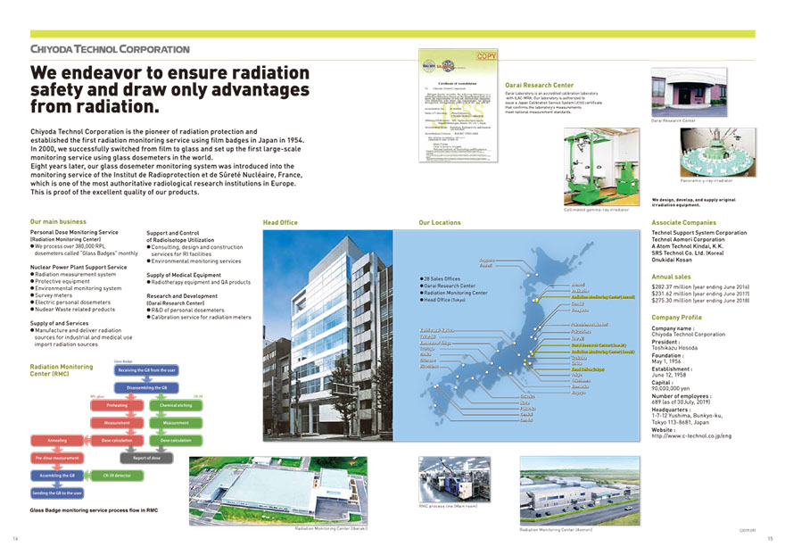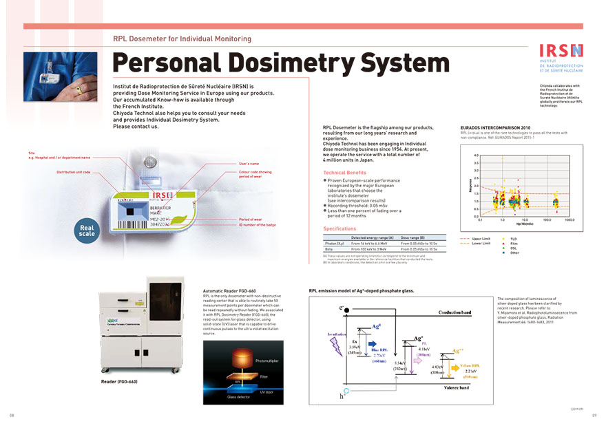 ガラス線量計をメインとした海外向け製品パンフレットを作成して頂きました。