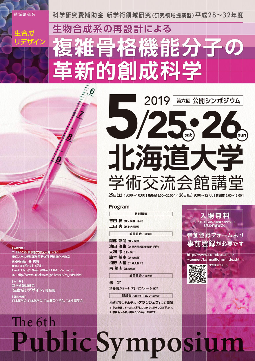 第六回 公開シンポジウム「生物合成系の再設計による複雑骨格機能分子の革新的創成科学」