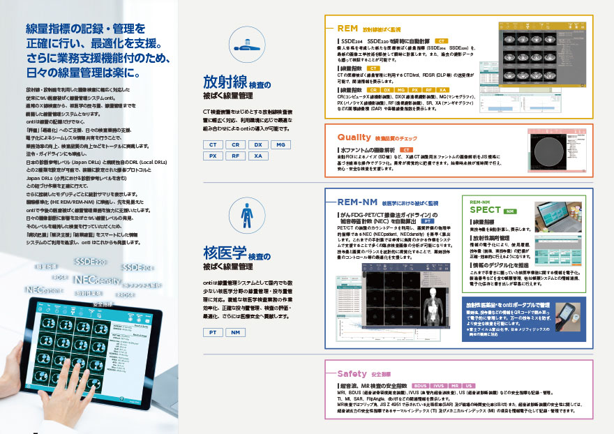 お客様の情報を丁寧にヒアリングさせていただき、見開きページにまとめました。情報量が多い被ばく線量管理システムですが、スッキリわかりやすく見せる工夫をしています。