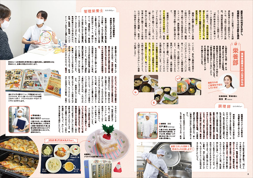 過去2回は、地域医療機関に向けてがん診療の連携を呼びかける目的で制作しましたが、配布先の病院などで待合室に置かれるケースが増加していることから、今回は患者さんやご家族もお読みなる前提でより親しみやすい内容、デザインとしました。特集としてコメディカルの皆さんを取り上げ、病室を訪れて直接患者さんのご要望を伺ったり、相談を受けたりして信頼関係を築きながら、一日も早い回復を助けるために尽力されている様子をご紹介しました。