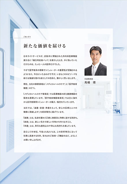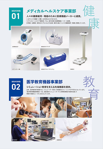 日本ライトサービス様は、医療機器の卸と健康機器を販売するメディカルヘルスケア事業部と、医学教育用シミュレーターの輸入・販売を行う医学教育機器事業部の2つの事業を展開されています。