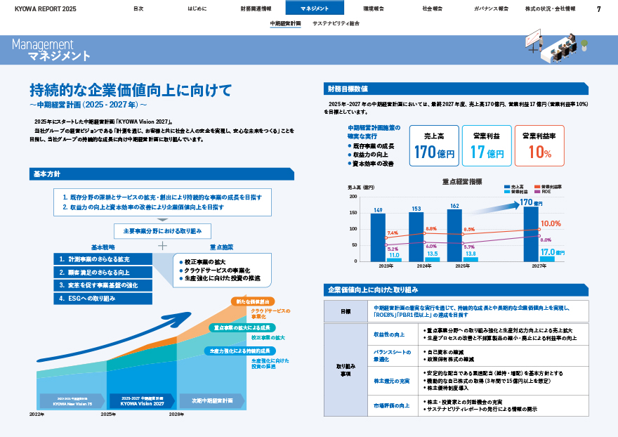 応力計測のリーディングカンパニーとして、多岐にわたるステークホルダーへ事業内容を正確に届けるWeb公開用PDFの作成をご依頼いただきました。企業の堅実な成長を伝えつつ、社会貢献や社内育成といった「企業の姿勢」をいかに身近に感じてもらえるかが課題でした。
