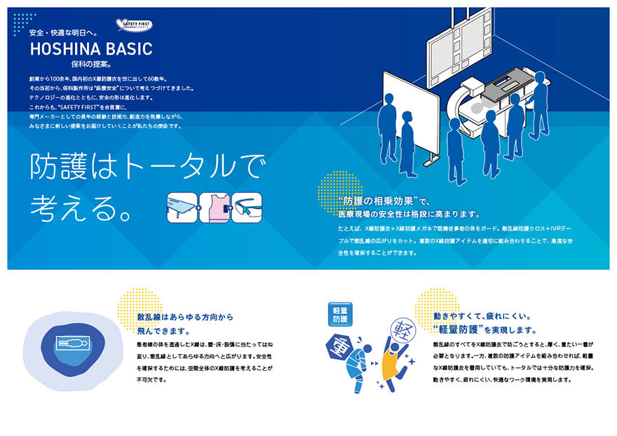 病院の手術室で使用するX線防護衣のカタログを元にインパクトムービー®を制作。52ページあるカタログを1分53秒にまとめました。X線防護衣の訴求ポイントを画像の動きだけで飽きさせることなく展開します。音楽に合わせ種類の多い防護衣をテンポ良く見せていきます。